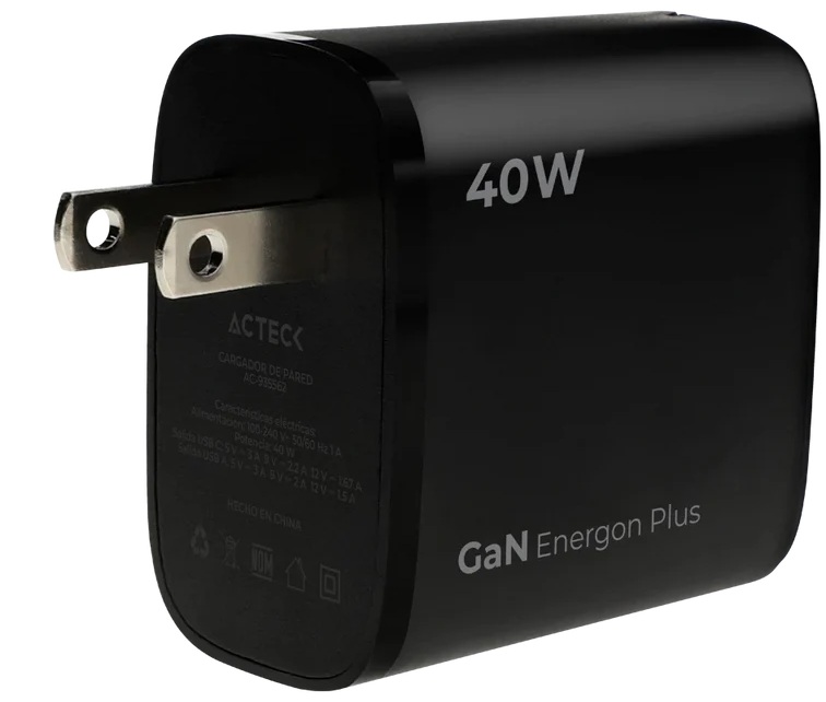 CARGADOR DE PARED ACTECK (AC-935562) CP38W ADVANCED, 40W, 2*USB C, 1*USB A, 100-240V, NEGRO