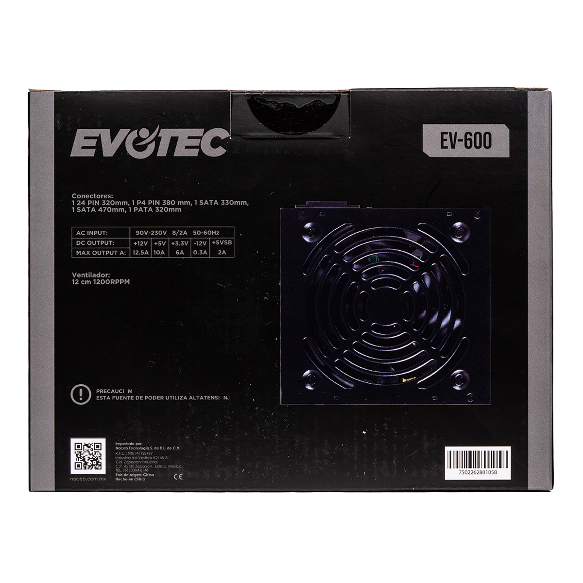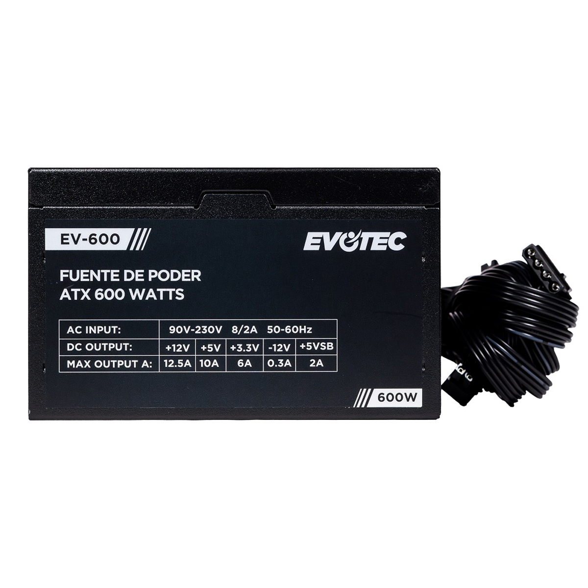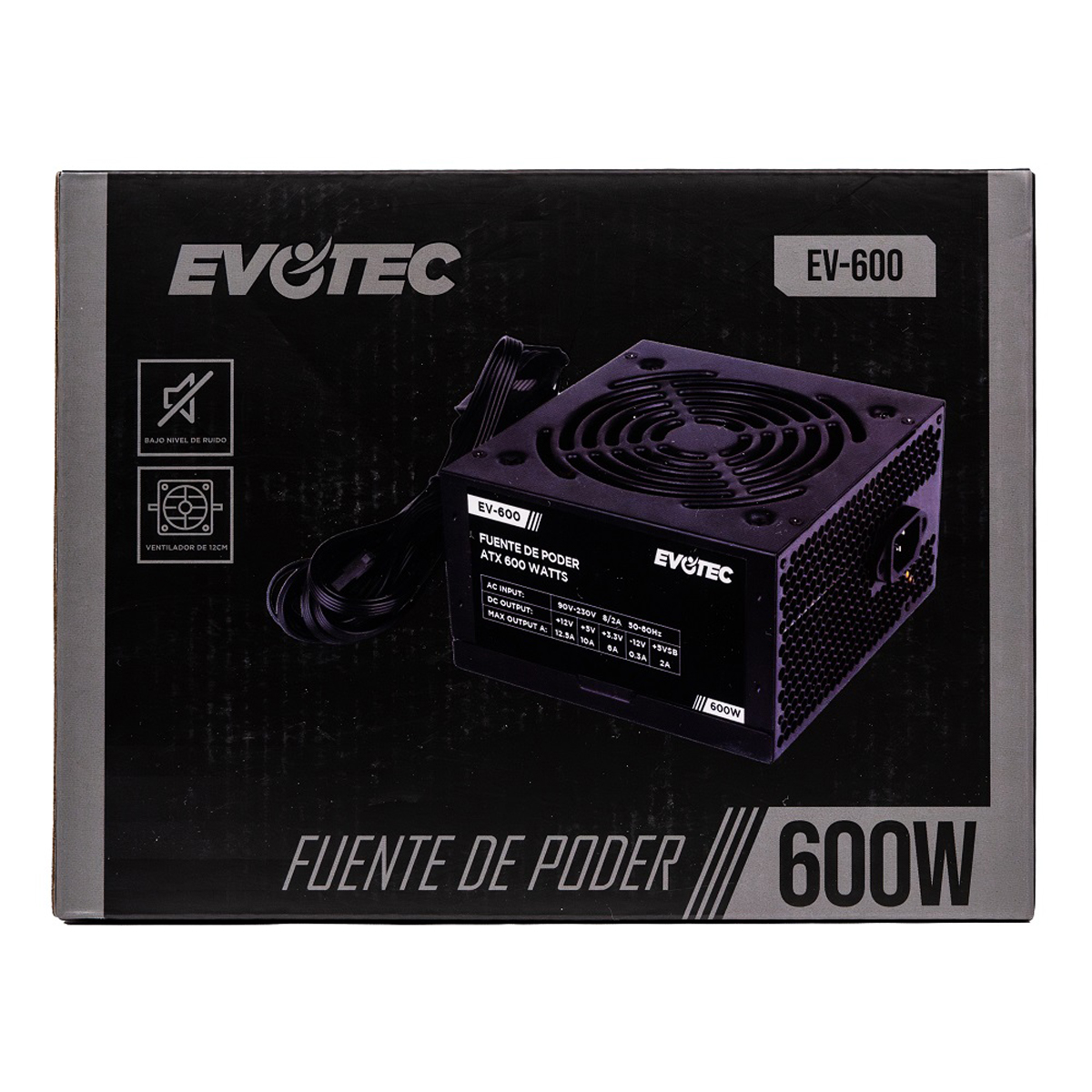 FUENTE DE PODER EVOTEC (EV-600) 600W,24 PINES,2 SATA, EMPAQUE INDIVIDUAL