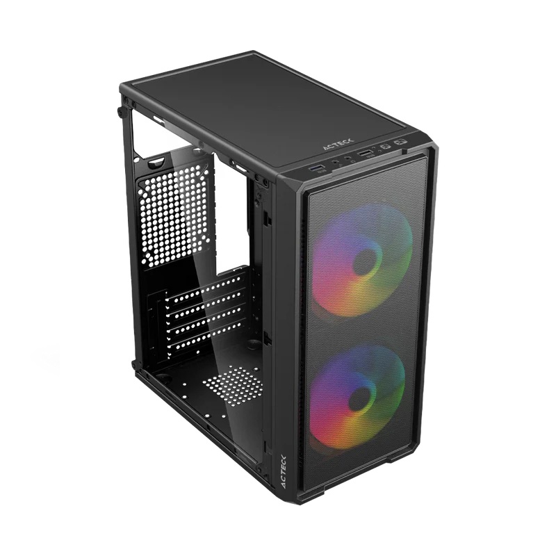 Descubre el gabinete mini torre Gabinete Acteck Doom Ultra Mesh GI750M, diseñado para potenciar tu equipo con estilo y rendimiento. Compatible con placas madre Micro-ATX (M-ATX) y con fuente ATX de 500 W incluida, este modelo cuenta con panel frontal tipo mesh para un flujo de aire óptimo, panel lateral de cristal para mostrar tu sistema interno, dos ventiladores de 120 mm con iluminación FRGB ya instalados, conectividad rápida con 2 × USB A 2.0 en el panel frontal y alimentación mediante conector Molex. Su acabado negro le da un aspecto elegante y versátil para cualquier setup.