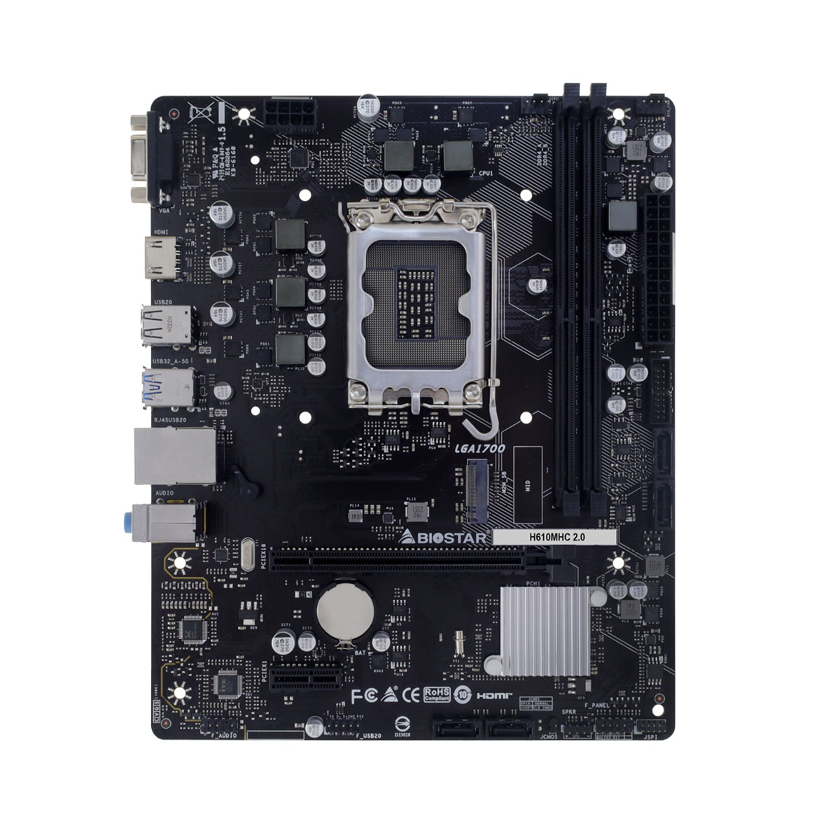 MOTHERBOARD BIOSTAR (H610MHC) INTEL,LGA1700,DDR4 4400,USB 3.2 GEN1,PCIE M.2 4.0,HDMI,VGA,DVI,RJ45,MICRO ATX