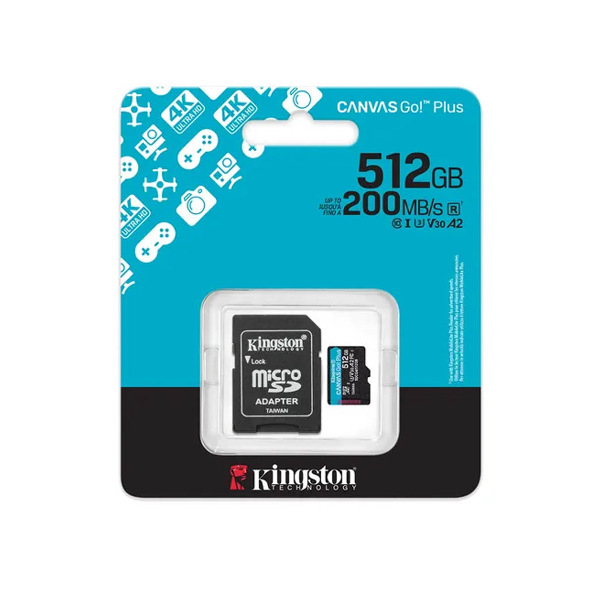 DESCRIPCION DEL PRODUCTO: MEMORIA MICROSD SDXC KINGSTON 512GB CANVAS GO PLUS GEN4, UHS-I, 3U, V3, A2 CLASE10, C/ADAPTADOR