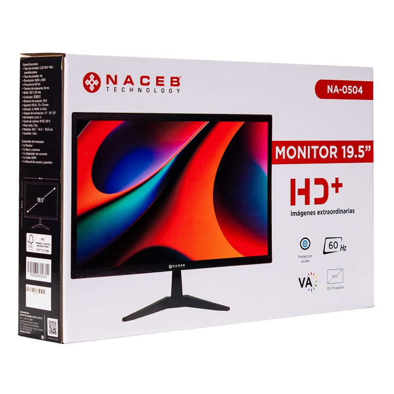 MONITOR LED 19.5" NACEB (NA-0504) HD+ 1600 X 900, 60HZ, PANEL VA, TR 6MS, HDMI + VGA, NEGRO