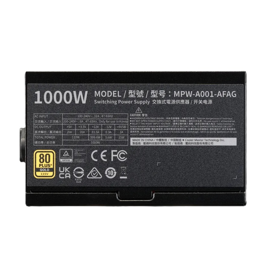 FUENTE DE PODER COOLER MASTER (MPW-A001-AFAG-BUS) ELITE GOLD 1000 FM A/US CORD