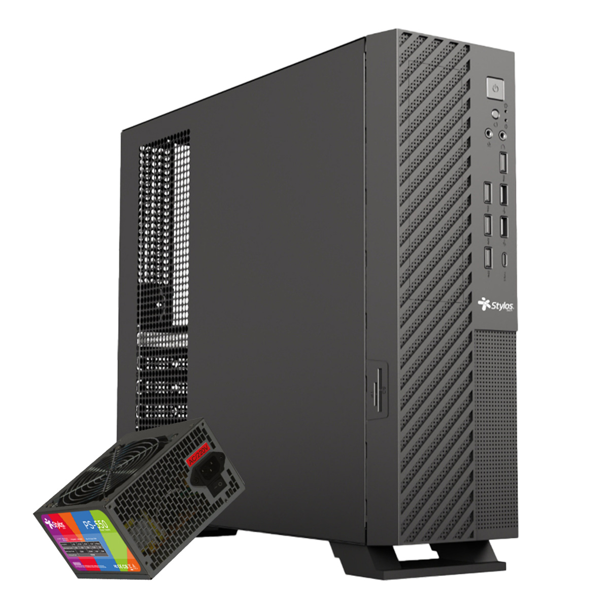 GABINETE STYLOS (STGAMN1B) MINCE, SLIM MINI-ITX, USB 3.0, USB TIPO C, FUENTE 550W, NEGRO
