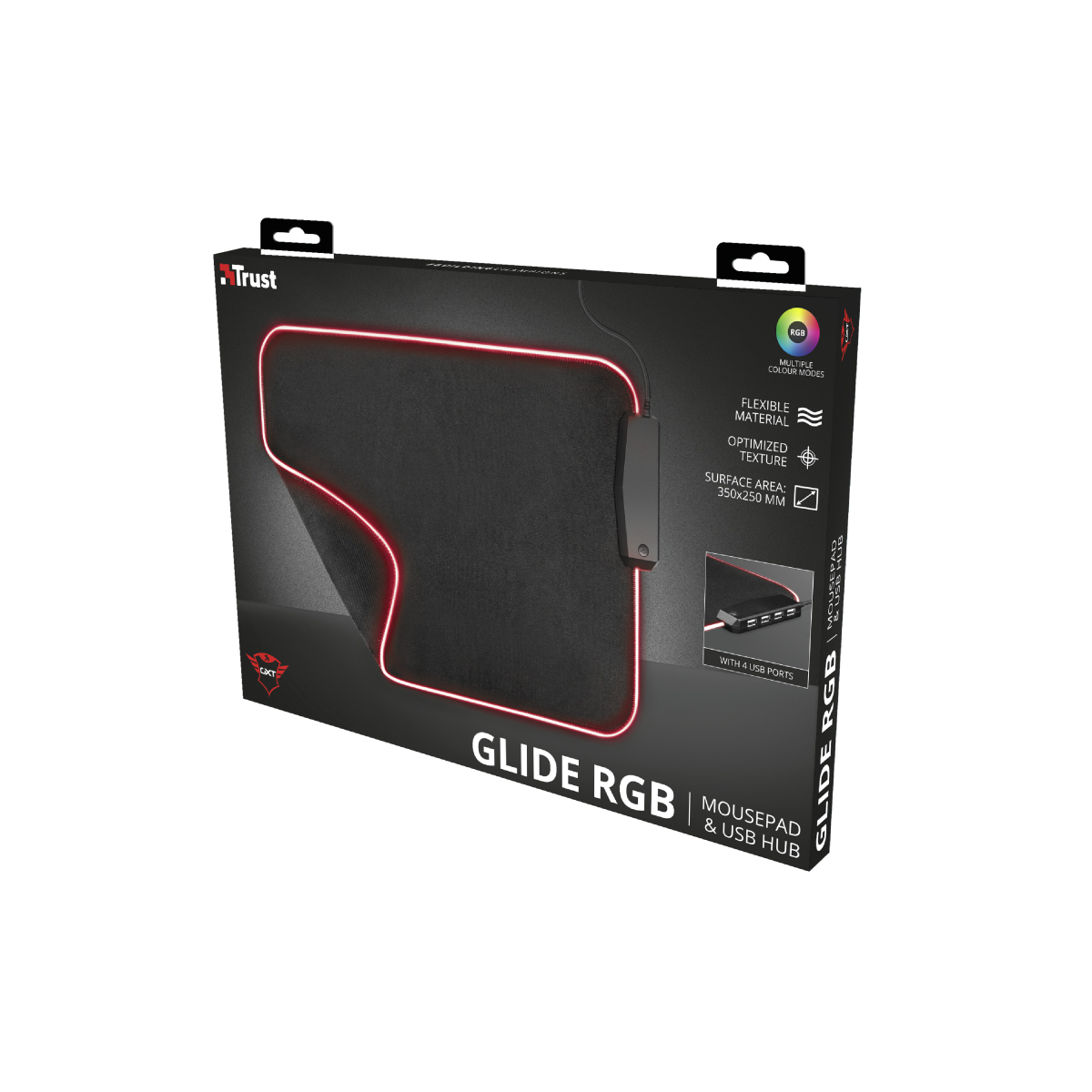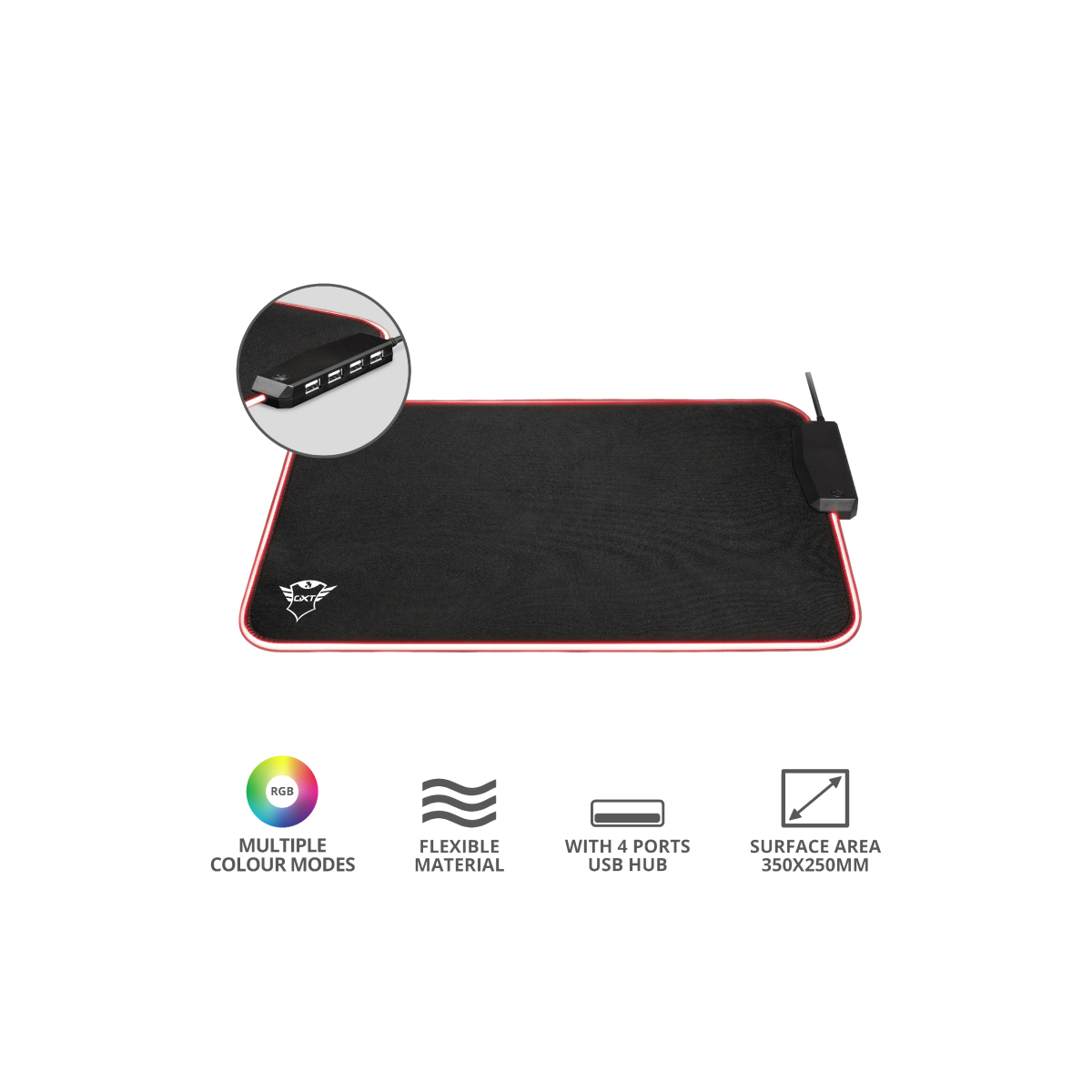 MOUSE PAD TRUST GXT (23646) 765 GLIDE FLEX RGB, BORDES CON ILUMINACION RGB, 4 USB+D66