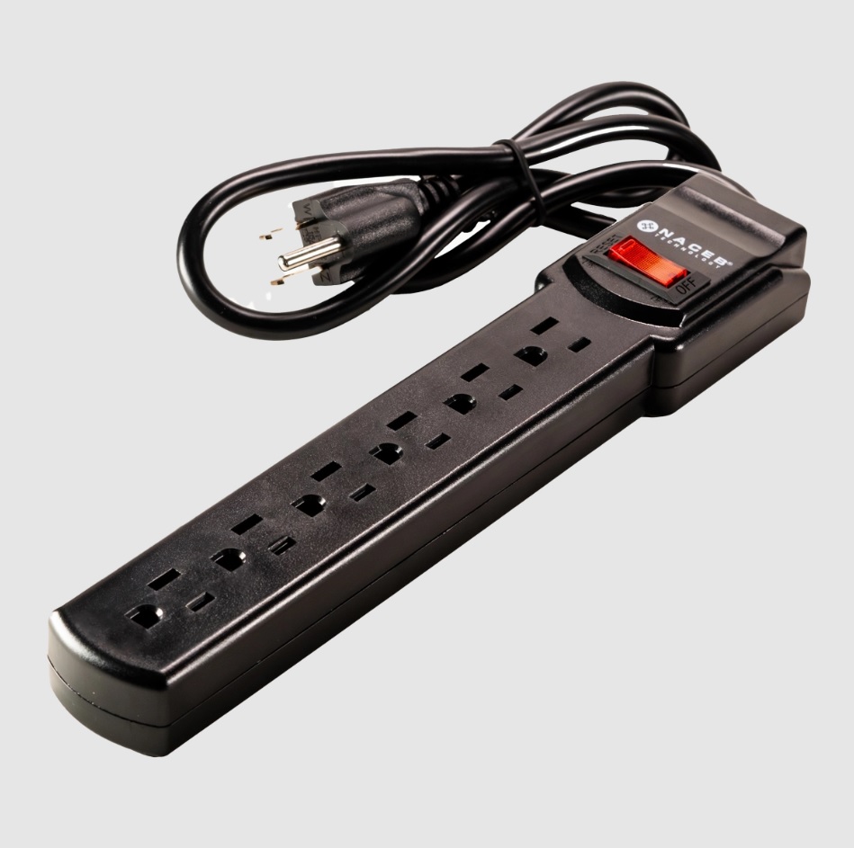 SUPRESOR DE PICOS NACEB (NA-0706) BARRA, 6 CONTACTOS, MAX. 1875 WATTS, CON SWITCH DE REINICIO